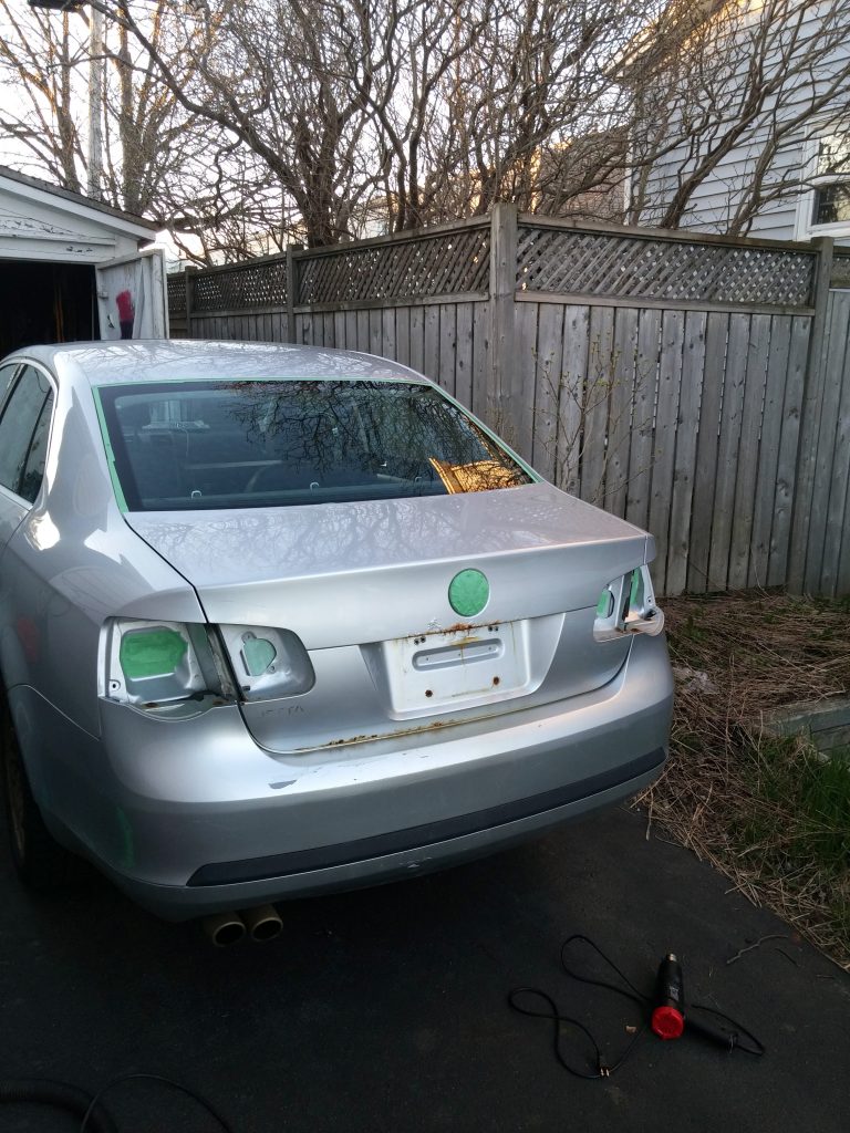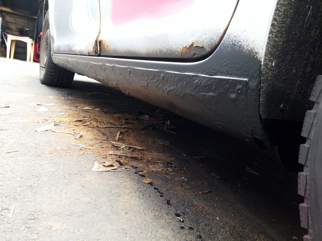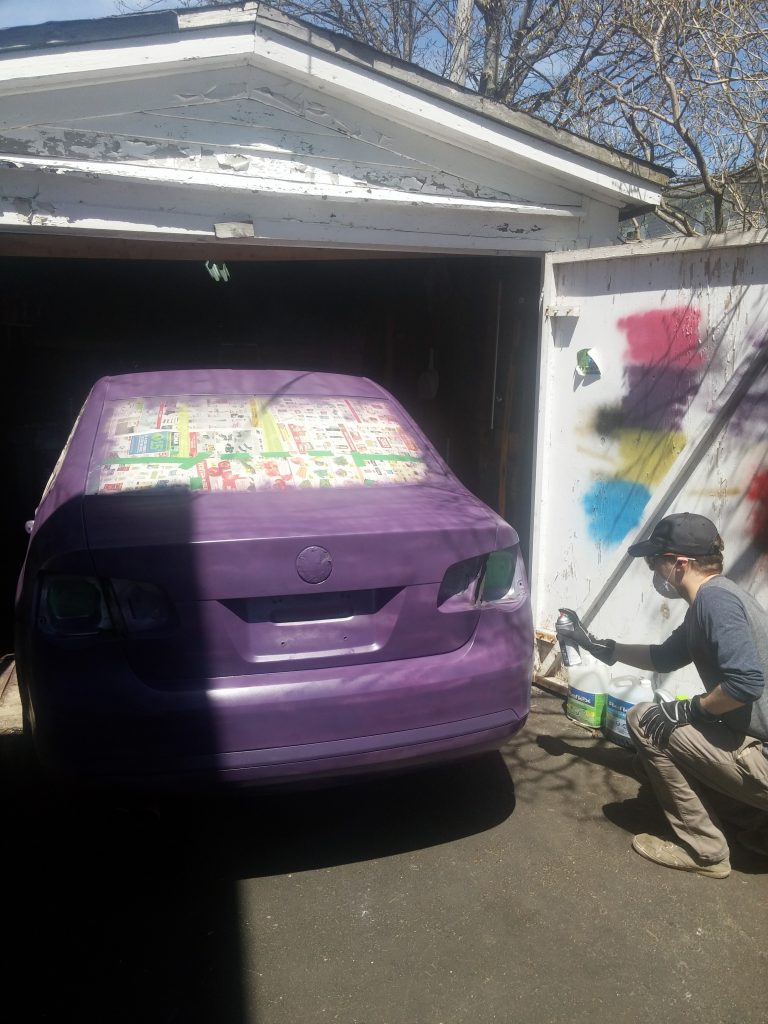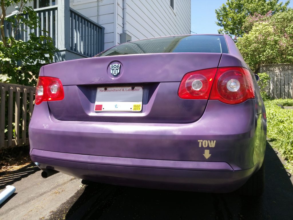 Yep, it needed to be painted. The old silver-and-rust colour scheme just wasn’t doing it for us. We decided on a royal combination of purple and gold, and did a “perfectly acceptable” one-day spray paint job, after fixing up the rocker panels.